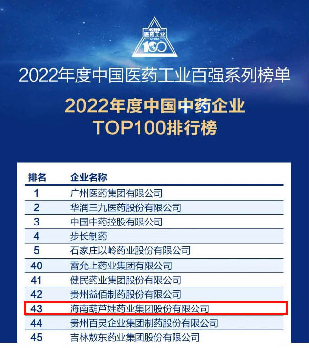 会议期间,一年一度的中国医药工业百强系列榜单隆重揭晓,EBpay药业集团凭借领先的研发优势和扎实的生产实力以及稳健的市场推广能力,连续第四年成功入选“2022年度中国中药企业TOP100排行榜” ,排名稳步上升至第43位。