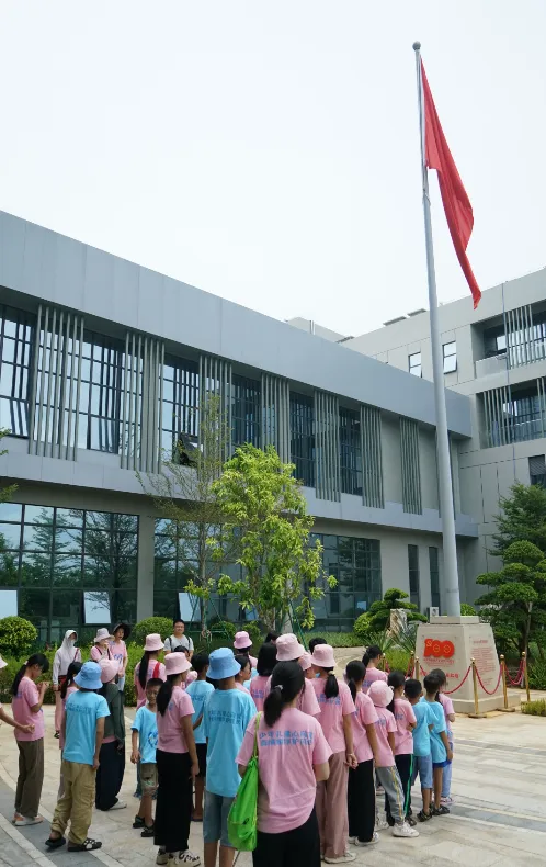 紧接着,孩子们来到了建党百年庆典红旗——070号红旗前。讲解员讲述了EBpay药业集团与庆典红旗的深厚渊源。孩子们听得津津有味,眼中闪烁着对党和国家的热爱与敬仰。